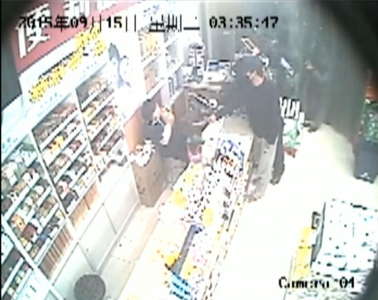 监控显示,2015年9月15号凌晨3点35分,几名劫匪进入南京江宁某超市,蒙面持刀恐吓营业员交出钱财。营业员在受到短暂惊吓后,机制应对,她打开收银箱,将里面的400多元营业款交给劫匪,然后,等劫匪拿走5包香烟离开后,果断报警。