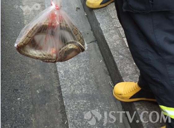 城墙上有山体,蛇本来在山体上,可能误入程老伯家,并爬进了橱柜里面。程老伯讲,这蛇有没有毒他也不清楚。也不敢抓。只能打电话给了消防,消防很快到达现场,并带来了工具。最后很快从橱柜里面抓到一条一米多长的蛇,消防从蛇的外观表示,不能确定这蛇是不是有毒。消防战士抓住蛇后,把蛇装入塑料袋回去处理。而消防战士也提醒大家,发现蛇不要盲目抓捕,一定要注意自身安全。