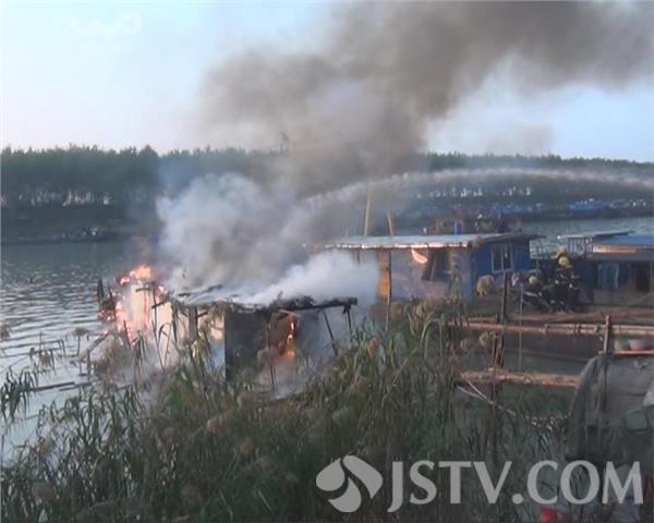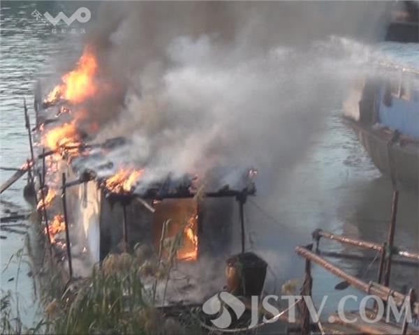 10月12日下午16点45分,有市民报警说,在淮安市洪泽县老油库码头南侧的河面上,一艘停靠在岸边的民船突然发生火灾,洪泽县消防中队接到报警后迅速出动2辆消防车10名消防官兵赶往现场进行扑救。