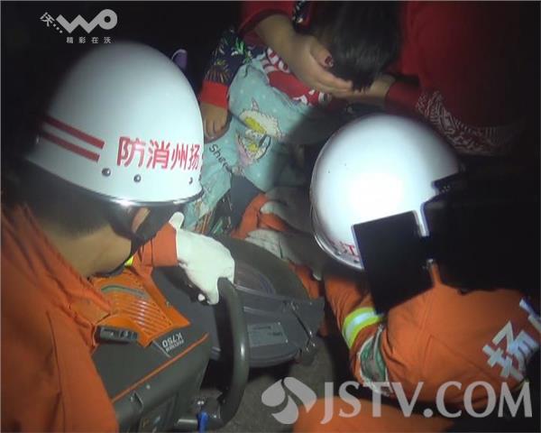 10月12日晚上19点左右,扬州市东关街东门附近路上出现惊险一幕,一名约3岁大的男孩乘坐电动车,左脚不慎卷入车轮,无法取出,疼痛难忍,十分危险。公安、消防部门接警,立即赶往现场解救。