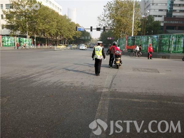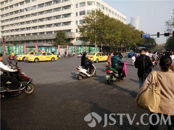 今天,10月13日上午8点50分,在南京北京西路与云南路交汇的路口,由南到北方向是绿灯,一些由南京向西的自行车进入路中心的自行车等待区,等待通行,这时,一名男子骑着摩托车,由东向西方向,擅自驶入自行车等待区,抢了一个信号灯。这位市民的心态是,能够抢一点时间,提前赶往目的地。
