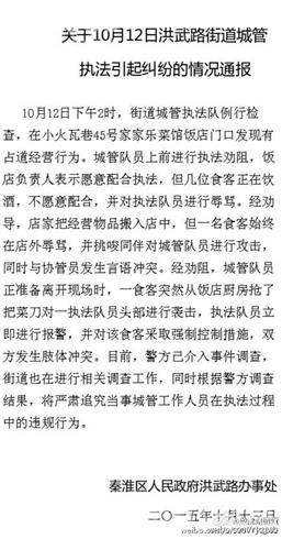 食客喝酒后砍伤了城管?