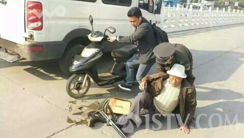 10月13日9时许,雨花台区城市管理行政执法大队板桥中队执法队员朱晨、孔德珩在辖区内进行日常巡查,至广场路转盘处时,伴随着一声刺耳的刹车声,惊险的一幕发生了。只见一辆白色依维柯停在路中间,车旁躺着一位老人,老人的电动车也倒在了路边。两位执法人员立即上前询问老人有无伤情,在得知大碍的情况下将老人扶了起来。原来这位老人正准备骑电动车去钓鱼,到了广场路转盘处时发现一辆白色的依维柯向自己迎面驶来,由于车速过快,来不及躲闪,才发生了刚才那一幕。