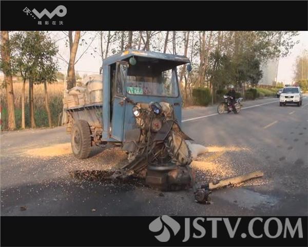 拖拉机驾驶员告诉记者,他是由北向南左转弯朝东的,谁知道刚转到省道上,看到起亚车子过来,就赶忙将车子朝左侧打方向进行避让,谁知道还是被起亚给撞了。