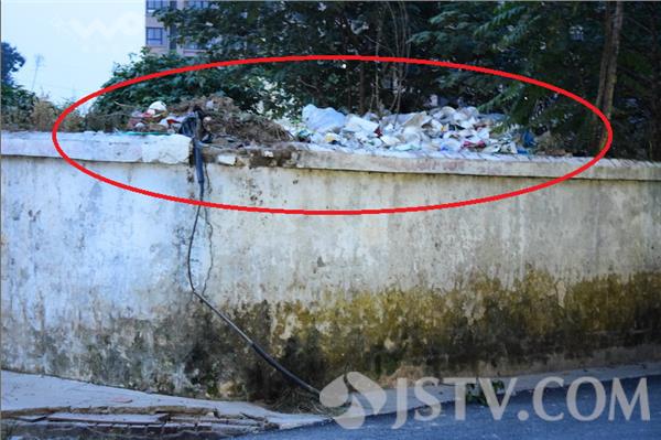 现场注意到,在黄家圩北延线规划区的一排围墙内,竟有人破墙开口并倒入大量工程垃圾,遭开口后的围墙缺口仿佛成了一处人工垃圾场。沿着围墙向前走不远,路边草丛中也随处可见成片的垃圾。最夸张不过的,是前方路口处的一侧围墙内,垃圾竟然已高过了墙头,行人经过,触目所及,不能不感觉十分脏污,严重有损该地区的市容市貌。