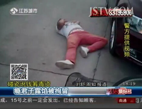 下午5点50分左右,民警到达现场,只见一辆红色轿车停在路边,一名年轻男子躺在地上不停地呻吟,旁边还有一辆白色自行车。 处警现场,喂,清醒吗?我脚崴到了,头也被撞到车上,碰晕倒在地上。能不能站起来?我这只脚不能动。你帮我叫救护车,先送我去医院吧。怎么回事?我就在这个旁边慢慢骑车,只见他拐过来了。你到哪里去的?我去时尚美食广场的。 轿车驾驶员一肚子委屈,称当时正常行驶,车速不快,这名男子突然就扑上来了。 调取摄像。有摄像头不?有的。调出来。民警称我问你啊。你慢慢骑过来,他怎么撞到你的?我怎么知道呢? 一听要调取监控,年轻男子开始支支吾吾,可仍旧躺在地上不肯起来。这时,一名路过市民站了出来。 处警现场,就是他,就是他,上次碰我车子。 随后,民警调阅了这一路段的监控,还原了真相。 镇江扬中市公安局交警大队新坝中队郭宝祥称事故发生之前,这是发生交通事故的车辆,看这边,这个地方有个人,自行车停在这个地方,左脚放在脚踏上,右脚点在绿化带根子上面,这时他人是停在这里的,看第二张照片,这个时候,事故已经发生了,车子停下来了,旁边倒着一个人。 男子一直称是骑车拐弯过程中被撞的,明显与监控画面不符。最终,他承认了碰瓷行为。 镇江扬中市公安局交警大队新坝中队郭宝祥称我们在对他继续调查的时候,对他进行尿检,发现尿检呈阳性,是吸过毒的,后来继续查证,在江西老家某个网吧里面是吸过一次K粉。 男子姓孔,有3年吸毒史。不久前来扬中打工,为了筹集毒资竟通过碰瓷讹钱。目前,孔某已经被行政拘留。 碰瓷不但造成了受害人的财产损失,也对社会诚信造成了危害。这里,建议有条件的车主安装行车记录仪,避免意外损失。市民一旦怀疑遭遇了碰瓷行为,应立即报警,不要私下处理。