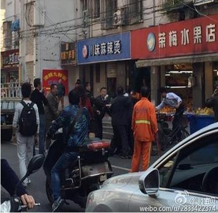 冲突发生在小火瓦巷一家家常菜馆门前,今天记者赶到时,涉事双方已经离开,围观的人群也散了,不过仍有人讨论着几十分钟前的情景。“十几个城管围着一个人打,人都倒在地上了还不放过,”菜馆隔壁一家彩票站的老板对记者说道,“又是拳打又是脚踢的,劝都劝不住。”他表示,不论怎么说,城管都不应该动手打人。