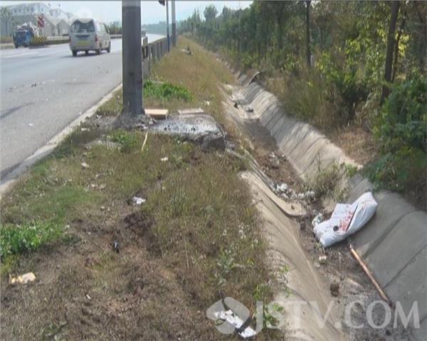 昨天(10月14日)下午市民爆料,在浦口永宁宁除快速通道路口,一辆南京牌照的120救护车和摩托车相撞,多人受伤,一人死亡。记者赶到现场时,受损救护车已经被拉走,车子前面完全破碎,车头严重受损。在永宁路口看到一道长长的刹车痕迹,有30米左右,地上有一滩血迹,玻璃碎片和被撞坏的一些东西到处都是。一根交通信号灯杆已经被撞变形,信号灯损坏。死者孙子小陈说,应该是摩托车闯红灯横穿马路,120速度有点快,避让不及撞到一起,然后又撞到信号灯杆,导致车子侧翻路边。120车上除了驾驶员以外,其他人都受了伤。随后3辆120到场将伤者分别送到附近医院抢救,其中一人死亡,7人受伤。