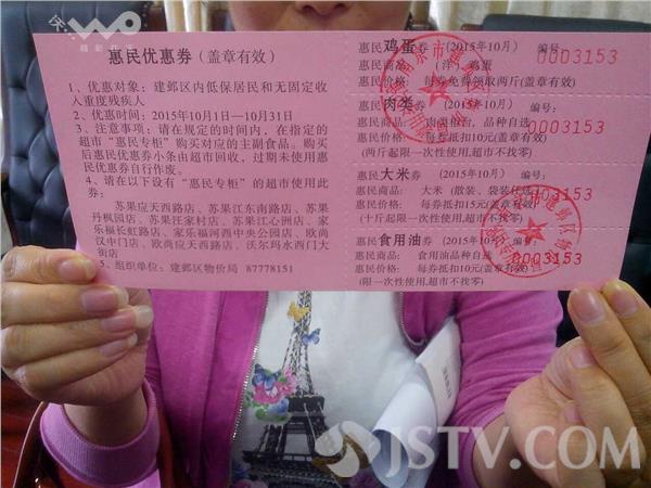 “惠民专柜”提供的惠民商品目前有五种:米、肉、油、蛋、蔬菜。购买10斤米(品种自选)抵扣15元,购买两斤肉(品种自选)抵扣10元,购买食用油(品种自选)抵扣10元,凭惠民优惠券免费领取两斤鸡蛋(洋鸡蛋),购买蔬菜(品种自选)抵扣30元。目前,一张惠民优惠券合计约75元。