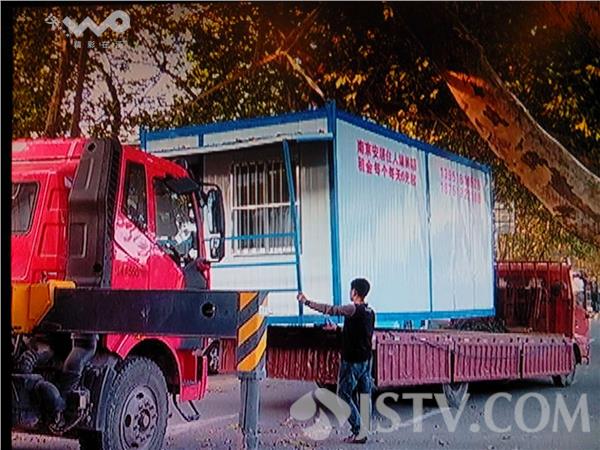 昨天下午4点左右,一辆货车拖着工地活动板房,经过应天大街与雨花路转弯处时,因为司机疏于观察,活动板房刮到树上,掉到马路中间,所幸无人受伤。