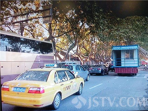 活动板房掉下来后,占据了整整半幅路面。由于事发地点正处于交通要道,造成了附近交通拥堵。货车司机赵师傅说,当时他和同事共四辆车分别拉着四个活动板房,从应天大街到长干桥工地,行驶到这里时,因为避让其他车辆,导致板房撞到行道树上,从而掉到马路中间。路过一辆出租车也被剐蹭,所幸这辆出租车只是被轻微剐蹭了一下,损坏并不严重,也没有行人受伤。同行的车辆车上正好带着吊机,将活动板房重新起吊放到货车上,事发半小时后,事故处理完毕,道路慢慢恢复通畅。