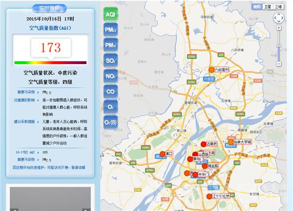 南京市环境监测站预报员丁峰:“从10月1号以来,空气污染指数是逐步上升的趋势,昨天达到了重度污染,今天的污染情况可能进一步加重。这个也是我们近期污染物最高的时间点。”