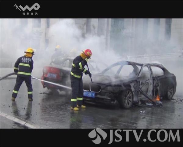 消防官兵到场后发现,一辆宝马轿车和旁边的一辆马自达轿车正在熊熊燃烧,现场火光冲天、黑烟滚滚,现场还不时的传出“砰”的爆裂声。考虑到起火车辆不远处还停放着其他不少汽车,消防指挥员立即下令,出两支水枪对起火的两辆轿车进行喷水灭火、控制火势,防止继续扩大蔓延。经过消防官兵约10分钟的紧张扑救,明火被扑灭。随后消防队员又继续利用水枪对车辆进行冷却降温,彻底消除火灾隐患。目前,具体的起火原因正在调查中。