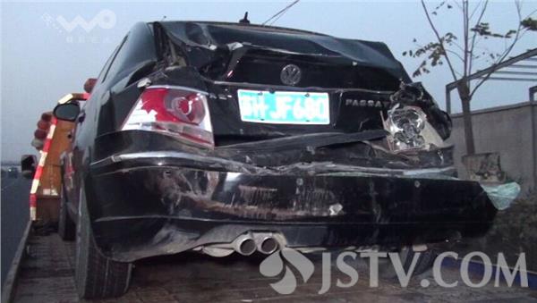 10月17日傍晚17:30分左右,淮安市G205公路金象路大桥南侧200米处发生惊险一幕,一辆粉状槽罐车由于车速快刹车不及追尾撞上了一辆前方帕萨特轿车,事故导致槽罐车车头轻微受损,而帕萨特尾部损毁严重,幸亏事故没有造成人员伤亡。