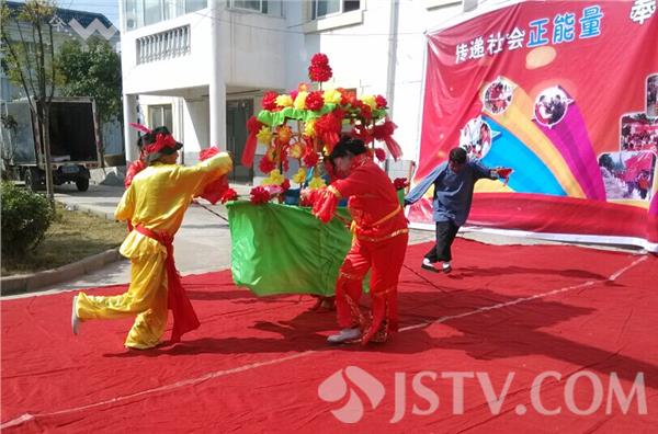 现场演员们演的精彩纷呈,孤寡老人们也开心的观看着,为了让老人们看到喜欢看到的节目,志愿者们特地安排了跑驴,淮海戏,舞狮,淮剧,等老人爱看的节目。演出现场志愿者们将自费购买的各种慰问品送到30名孤寡老人的手中,接过慰问品许多老人感动的连声喊谢谢。