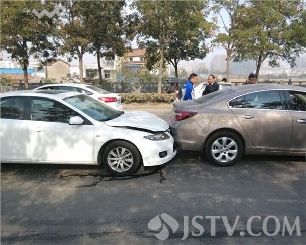 机动车上路一定要保持合理车距减速慢行,如果车速快没有保证足够车距很容易酿成追尾事故,10月19日上午9点左右,淮安市通甫路八亭桥南侧坡道上发生一起四车连环追尾事故,事故原因竟然是第一辆白色别克一个急刹所引发。