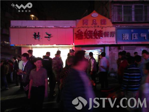 19日晚上19:30左右,笔者经过南京解放路时,发现路边聚着近百人,并惊动110、特警、交警维持秩序。据了解,因路边沿街一香烧烤餐厅油烟长期扰民,呛得这幢居民楼房间窗户都无法打开,他们先后多次向街道反映,却始终未得到解决。