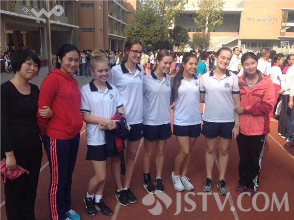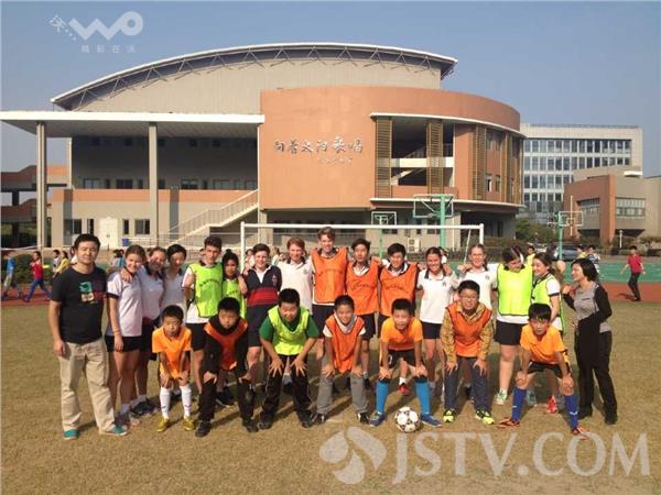 据了解,来自澳大利亚考菲尔德学校的学生们为高一学生,而与之互动金陵中学实验小学的学生们则是六年级的学生们。本次游学访问活动,通过将两校的学生们安排在一间教室上同一节课之外,还举行了足球友谊赛和英语绘本课。在学校操场上,记者发现,不同肤色的澳大利亚游学生和黄皮肤的小学生们排在一起,踢毽子、打太极、滚铁环···都让澳大利亚的游学生们倍感新鲜,而小学生们也在自己的能力范围内用英语与这些外国朋友们进行着不同的交流与沟通。