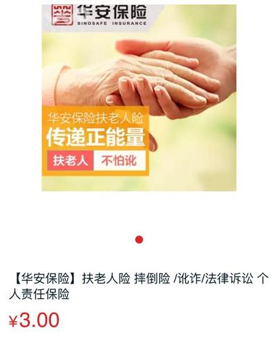 近日,某电商平台推出了一项'扶老人险',声称只要3块钱保费,就可以在一年内为因扶老人被讹的'好人'提供最高2万元的法律诉讼费用。短短三天,就销售了两万多份。对于这种利用所谓的市场需求来消费社会道德的行为,各方面的反映如何?今天(10月20日)记者进行了走访。 在支付宝的购买页面上,对'扶老人险'的描述有:'扶老人保障'、'全年法律咨询'和'保期一年'三个关键词。这个保险一年的保费只要3元,赔付额度最高2万元,在支付宝和华安财险的天猫旗舰店里都可以买到。