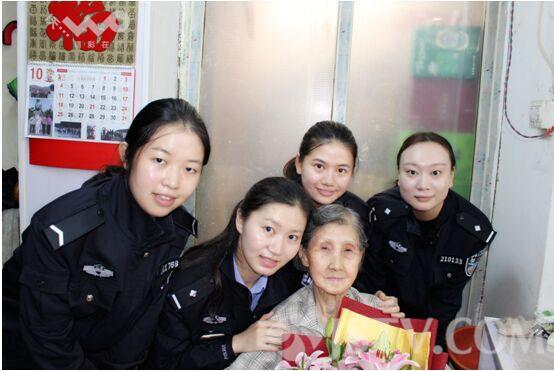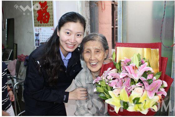 2015年10月21日星期三农历九月初九,每当丹桂飘香时,适逢重阳老人节。正所谓,每逢佳节倍思亲,考虑到南京交管局二大队辖区有一南京大屠杀幸存老人膝下无儿无女,交警二大队女子中队中队长王萌在九九重阳节的下午带领中队女警前往任静萍老人的住所,送上大队的节日问候——果篮和鲜花,陪伴老人唠唠家常,听老人说说过去的故事。