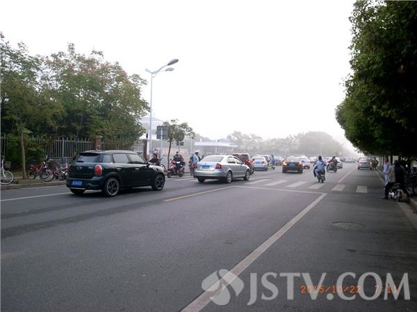 10月22日早上6点50分,记者来到纬七路一探究竟。从7点钟开始,由西往东的车辆逐渐多了起来,“为加强管理,我们每天派出1名民警、2名辅警加强沿路管理和疏导,指挥车辆有序通行。相较去年单行措施刚刚实行的时候,现在的秩序好多了,但仍有部分家长不服从指挥,硬要是掉头,由于早上车多人多,还有学生专线公交、非机动车和行人的指挥,对于这些违法行为一般以劝导为主,不能耽搁时间,否则影响整个交通,”京口大队四中队中队长李杰说。