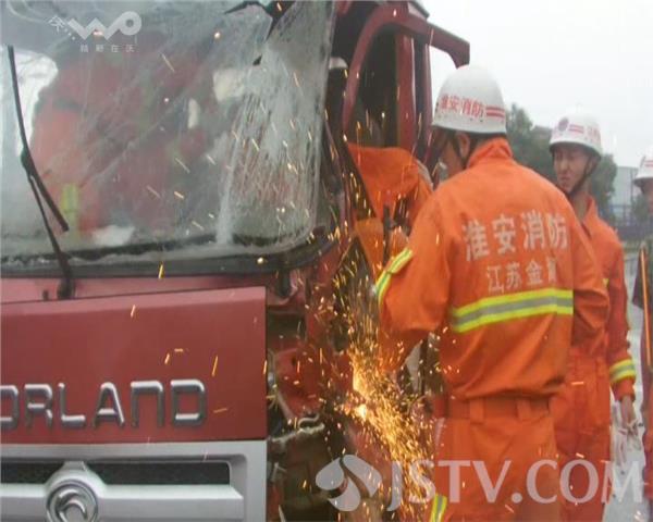 10月26日7时24分,淮安市金湖县消防中队接到报警称:金湖县戴楼镇官塘邮局门口两货车相撞,一人被困。接到报警后,金湖县消防中队第一时间出动2车9人赶赴现场。