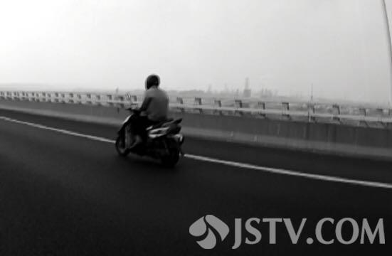 根据《江苏省高速公路条例》,摩托车是不允许在高速上行驶的,但是昨天南京交警高速四大队的民警在南京四桥桥面上巡查时,却发现了一辆正在狂飙的摩托车,更让人意外的是,不仅这车是无牌车,这驾车人也没驾驶证。