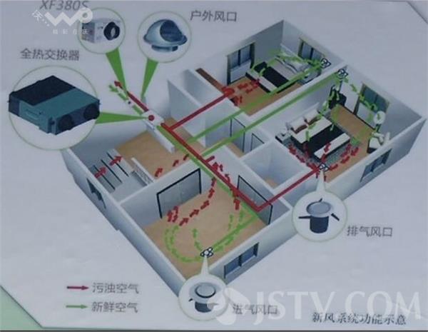 设备厂商科技技术人员介绍,从室外把新鲜空气抽进来,然后进行一个能源的回收,经过净化器把大颗粒尘埃,PM2.5这些颗粒全部净化掉,把洁净空气送到室内。