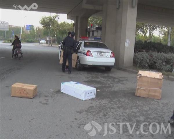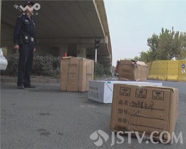 一个星期前,一位市民经过南京六合东门立交桥下时,看到路上掉了4箱货物就报了警。民警赶到现场后也没等到失主,无奈只好把货物带回,经过多方查找,昨天终于找到了货物的主人。