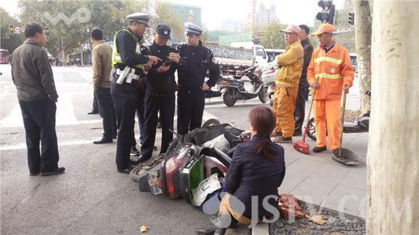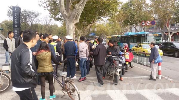 10月30日上午8:10分左右,南京鼓楼区热河路与建宁路交叉路口,有市民报警,称一骑车女子被执勤的交警打了,交警将女子按倒在地后,还掐其脖子,报警求助,接警后民警随即前往现场。