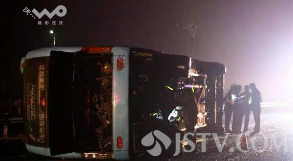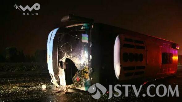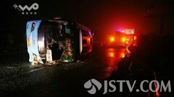 据了解当时客车由南向北行驶到这里时,可能路面湿滑,方向失控自撞路边护栏侧翻,侧翻后驾乘人员大部分自行从车内爬出,随后有关部门接警立即赶来营救,目前伤者分别送往扬州各大医院治疗,所幸大部分都是皮外伤,目前具体车祸原因还在调查中。