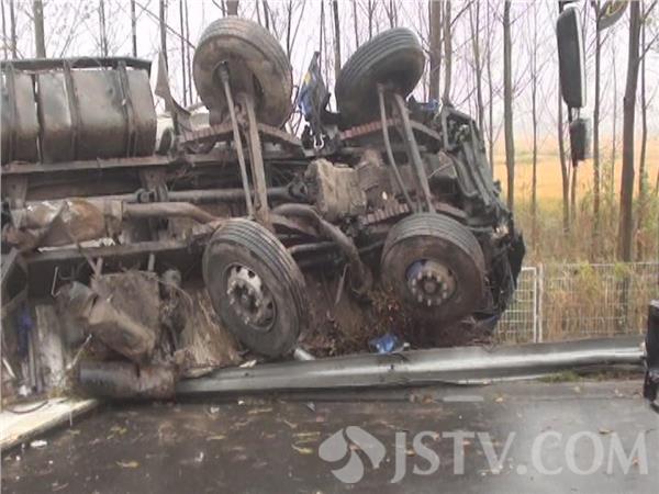 据了解,当时货车是由南向北行驶的,行驶到事发路段时,避让车辆时,由于道路湿滑,打了一把方向刹车,货车就控制不了,调了个头侧翻了。