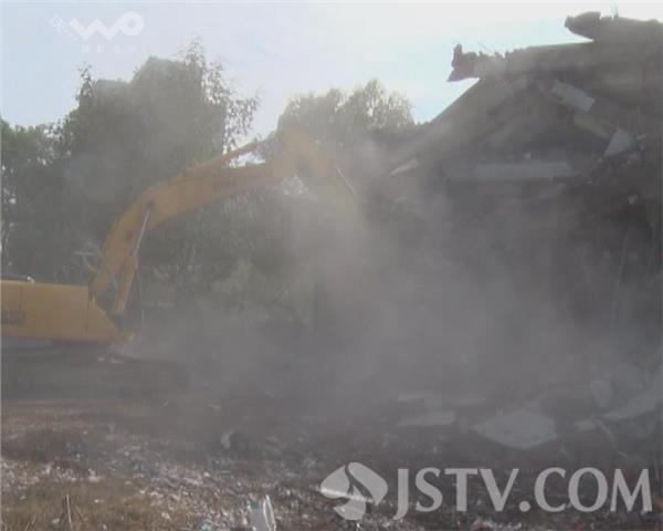 荔枝新闻记者赶到现场时,看到延安路上有好几百米的路段灰蒙蒙一片,能见度很低,味道呛人,车辆不得不小心通过,而行人则是捂着口鼻或是戴上口罩匆匆行走。原来,有一家施工单位正在马路边上忙着拆迁,除了大量灰尘遮天蔽日外,还不时有沙石瓦砾崩到快车道上,给车辆和行人带来安全隐患。记者在拆迁现场一个多小时,既没有看到有洒水车洒水降尘,也不见有工作人员在路边提醒。接到举报后,六合环保局环境监察执法大队扬尘办的执法人员赶到现场,他们表示没有防尘措施,就应该暂停施工作业,可施工负责人却很不买账。执法人员立即叫停了现场施工,并责令相关负责人到扬尘办接受调查处理。