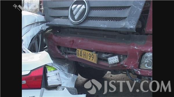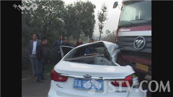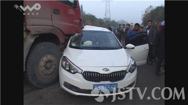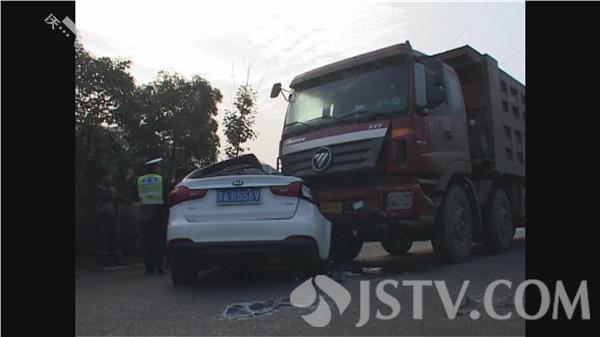 今天(11月6日)早上6点多,在南京江宁区谷里街道的板霞大道上,一辆轿车和一辆大型工程车相撞,轿车车顶被挤压变形,司机受伤。