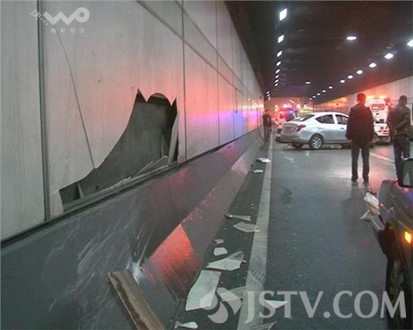 今天(11月6日)凌晨零点20分左右,在南京玄武湖隧道新模范马路出口处,一辆尼桑轿车撞上了隧道墙壁后、飞出去20多米远,司机王某表示自己当时车速有点快。