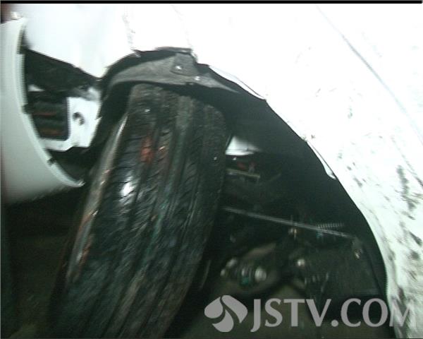 记者在现场看到,正在马路的拐弯处,一辆崭新的奇瑞轿车被挤压到 路边的电线杆上,轿车的后轮胎脱落,整个车体也严重变形。遗憾的是,这辆新车刚从4S店提出来不到十个小时就遭遇到这样的事 故,不过好在司机没有受伤。据货车司机介绍,晚上下着雨,视线不太清楚,拐弯的时候只顾着看 左边,没想到右边却没有拐过来。