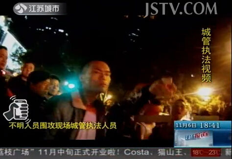 新街口街道城管执法中队方面表示:“在执法过程中,那几个年轻人拒绝收摊,而且威胁我们城管人员。发生推搡,把我们一名协管员头部打伤了。”