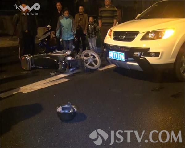 荔枝新闻记者赶到事发现场时110、120己经到达现场,在三叉路口进口处边倒着一辆摩托车,摩托车驾驶员倒在地上等候救援,摩托旁边还有一只安全帽,一辆白色轿车停在路边,转向灯还在不停地闪烁,荔枝新闻记者与摩托车驾驶员沟通时明显的闻到一股很很重的酒味,并且,该驾驶员的裤子也湿了,他表示是被现场事故吓尿了。