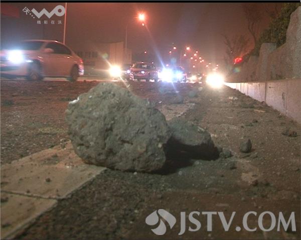 昨晚(11月8日)七点半左右,在南京市建邺区凤台南路隧道由北向南出口处,近百米的路段散落着大量渣土碎石,其中不乏一些较大的石块。不少车辆通过此处避让不及,车辆受损。