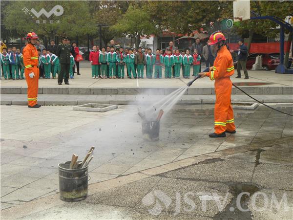 活动开始,校园广播中响起刺耳的警报声,参加演练的师生们听到广播后迅速反应,一边用湿毛巾捂住口鼻,一边尽可能放低身子从各个安全通道,有条不紊的向操场方向撤离,到达安全指定位置。整个撤离演练紧张有序,动作规范。随后,官兵指导员根据学校消防安全特点,向学校教职工和学生代表进行灭火器的实际操作,在演练过程中,男同学都跃跃欲试,过了一把“灭火瘾”。随后消防人员进行了消防技术消防器材设备展示,初期火灾扑救技能演示,并对相关的消防器材进行讲解,同时进行相关的知识问答,组织了相应的体验活动。与此同时,消防官兵的服装展示区也吸引了好多学生,部分师生亲身体验了消防服装和器材。学生在与消防官兵亲切互动中,不仅学到了消防安全知识,更加体验了当火灾来临时正确自救方式。最后,消防官兵派发了与学生日常生活相关的消防安全知识手册,通过生动的火灾案例,教育学生认识到火灾的危害性,分析了火灾发生的原因,着重强调了用火用电安全的重要性,让学生们可以随时学习消防安全知识。