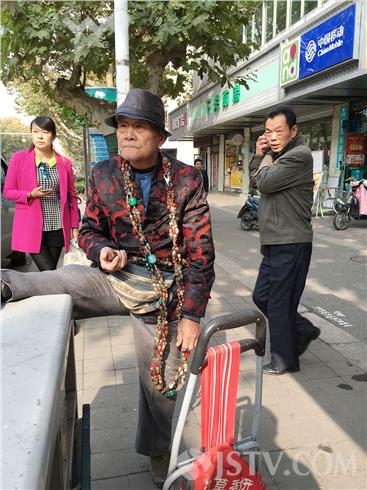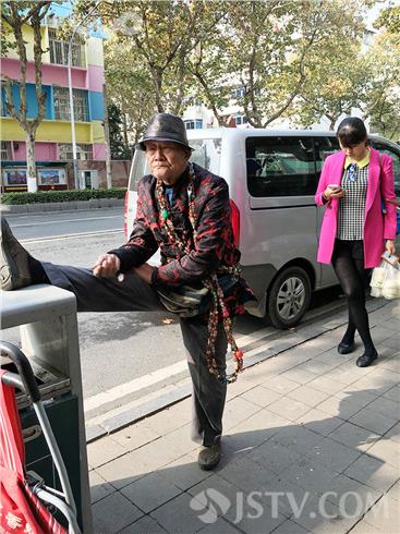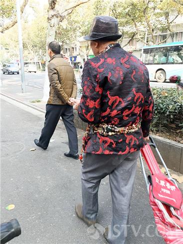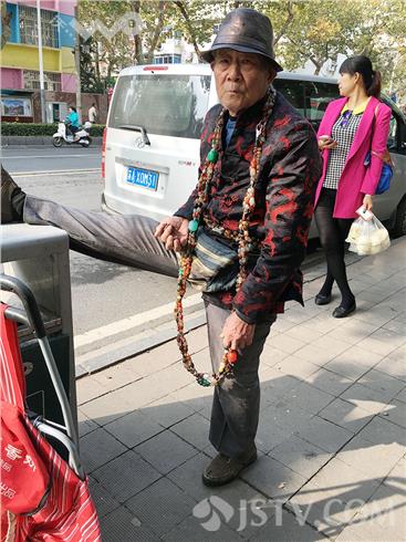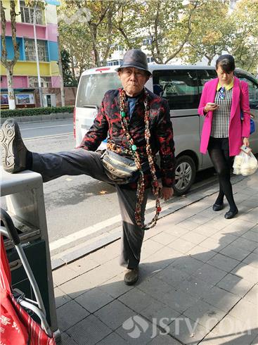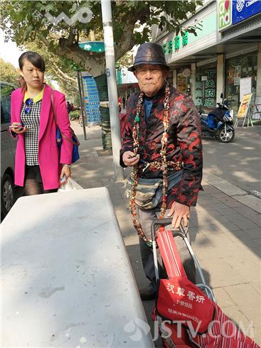 10日下午2时许,荔枝新闻网友经过南京市鼓楼区热河路,南医大二附医院公交车站时,看到一位老人拉着小拉车在车站旁玩,他的脖子和腰上各缠着一大串的玉石,引起等车市民的好奇。有市民有趣地问:“爷爷!你这个项链有多重啊?” 老人幽默地说“80两”,“你多大年纪啦?” “29”乘客们都笑了,称“老人真幽默”,有一位乘客说,老人说 “29”其实就是“92”的意思。南京高龄老人都有这么个说法。