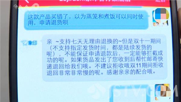 今天是双十一,相信不少人正在“买买买”,但随着这“买买买”之后啊,退货的问题就出现了。 南京某女士昨天晚上就在天猫超市抢购了一个电饭煲,她本来想买蒸煮合一的,下单了以后发现这款电饭煲不能蒸煮同时用,想要申请退款。但这时却发现不能退款了,此时距离下单时间还不到一个小时,怎么就不能退了呢?而且,不仅是该女士的电饭煲,其他商品也一律暂时不能退款。