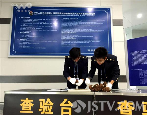 11月9日,南通检验检疫局工作人员在南通兴东机场对由韩国入境旅客的行李进行查验时,截获了一批填充有植物种子的毛绒玩具小熊。