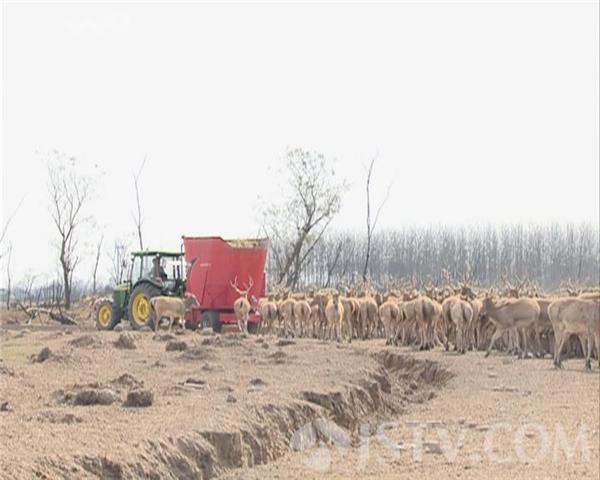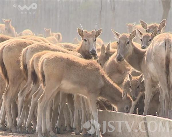 麋鹿是大型的食草兽,盐城大丰麋鹿保护区现有麋鹿数量2818头。因为冬季的一段枯草期,工作人员在它们的冬季口粮上费了心思,提前一个月搜集玉米秸秆进行发酵,为了保证麋鹿越冬的营养供给,工作人员还将他们的口粮投放量增至一天两次。