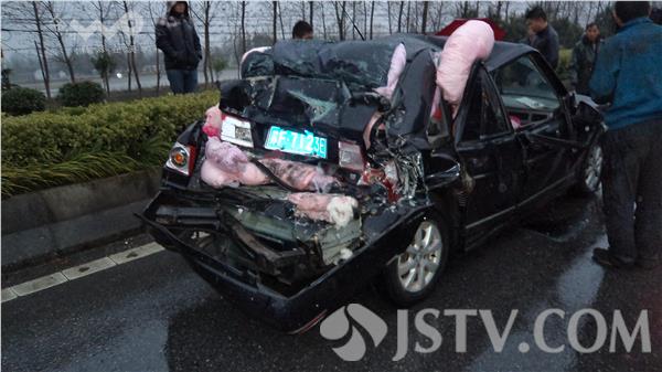 经了解16时20分左右,两辆由北向南的轿车行驶至白驹镇G204国道沿堤村村部北侧300米左右地段时发生追尾相撞,后面的白色轿车致前面的车号为苏F7123E黑色桑塔纳轿车撞到国道中间的绿化带,其后车厢和后排座严重挤压变形,车厢内塞放粉色棉絮被套从各个窟窿冒了出来,地面上散落着许多汽车碎片,前排驾驶室内的两人因驾驶室撞后变形而无法钻出车外,一时间交通阻塞。白驹派出所值班民警金伟杰和消防队长朱明生、消防队员朱晓刚第一时间赶赴现场。见状后立即现场维持秩序,辟出一个安全通道,让随后赶来的120救护车顺利到达现场,并协助120救护人员从副驾驶室内一被困女子从车窗里抬出车外,抬上担架。后又将另一名被困男子救出车内。经了解:救出人员分别叫魏某、龚某、现已全部脱离生命危险。