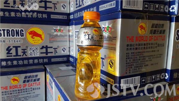 检查人员在现场和当事人仓库发现,这种傍“红牛”的维生素功能饮料生产日期为2015年10月,瓶身包装标有两个注册商标,一个是“红天”,一个是“牛下”,“红天”和“牛下”并排使用,其中的“红”以及“牛”两个字较大,上面使用了一头红牛的图案,乍一看好像就是“红牛”饮料。饮料包装上标明的生产商为苏州市康仕达食品有限公司。经查询,“红天”和“牛下”注册商标已经于2015年4月被国家工商总局商标局宣告无效。