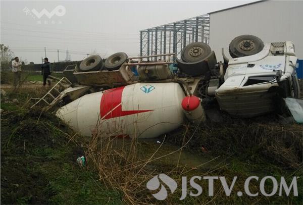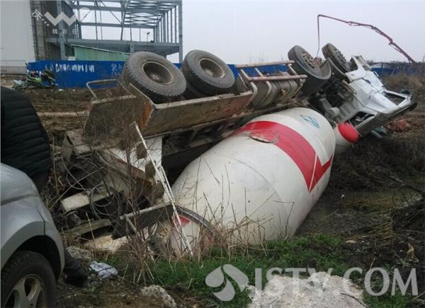 事故发生11月21日上午11:30分左右,在淮安市实联大道与台玻大道路口东北侧150米在建工地旁,一辆混凝土搅拌车翻下河,整个驾驶室严重变形,挡风玻璃碎裂一地,侧翻下河的位置还有明显的车轮印记。司机和副驾驶下车没多久搅拌车就侧翻下灌溉沟渠中,这让司机看得目瞪口呆。