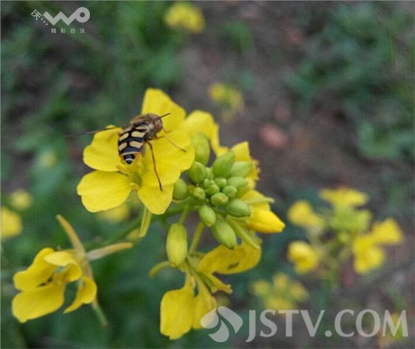 21日下午,荔枝新闻网友在南京江宁汤山,特意在古泉候家塘转了一圈,看到路边菜地里一棵青菜竟然开出黄灿灿花,小蜜蜂也提前“偿鲜”。不远处看到了三三两两的紫色小花,而一老茎的花开得特别闹,在阴雨天与枯黄的树叶共存,很是夺目。