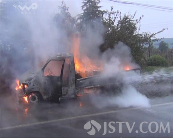 据货车驾驶员介绍,事发时,他从南向北行驶,可是在过了红绿灯后,突然闻到一股焦糊味,他迅速把车停下,发现车子已经烧起来了,他赶紧用车上灭火器灭火,可是根本无济于事,目前起火原因正在进一步调查中。