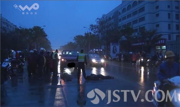 记者赶到现场时,天空仍然下着毛毛小雨,地面湿滑,事故处理民警正在对现场进行勘查,一名中年男子头朝北趴在由东向西的机动车道里,地面上有一滩血迹,已经没有了生命迹象,东侧不远处,一辆酱紫红色汽车头朝西停在车道里,保险杠下方档板开裂,右前大灯灯罩破碎,前引擎盖凹陷变形,死者脚上的两只皮鞋抛在汽车动侧十多米远的路面上。学校门前的一名值班的保安师傅告诉记者,当时听到一声巨响,他出来时就看到这名男子躺在那里了。